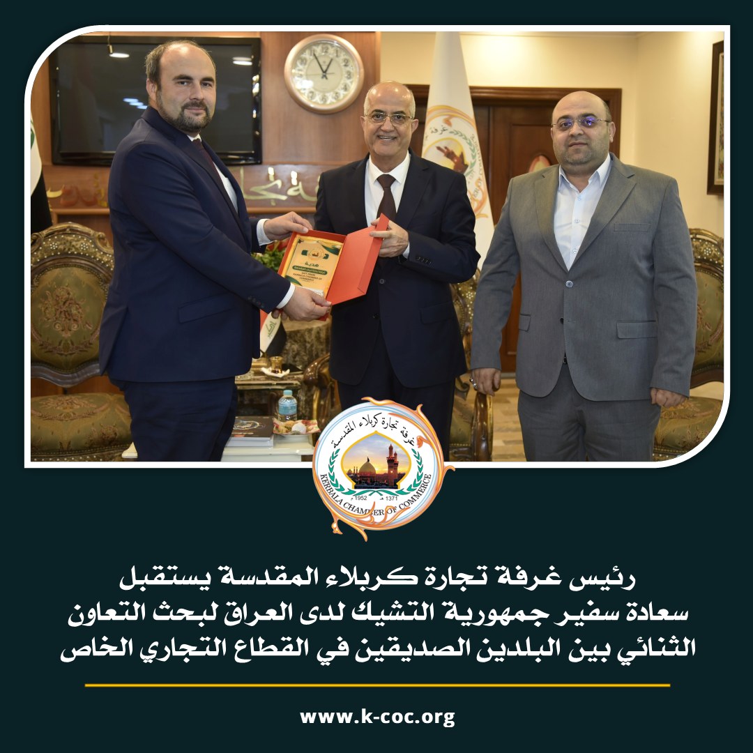 رئيس غرفة تجارة كربلاء يستقبل سفير جمهورية التشيك لدى العراق لبحث التعاون الثنائي في القطاع التجاري