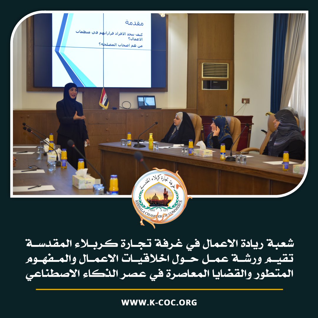 نظّمت شعبة ريادة الأعمال في غرفة تجارة كربلاء المقدسة، وبرعاية ومتابعة رئيس مجلس الغرفة المهندس زمان صاحب عبد عوّاد، وبالتعاون مع جامعة كربلاء / كلية الإدارة والاقتصاد، ورشة عمل تخصصية بعنوان: “أخلاقيات الأعمال والمفهوم المتطور والقضايا المعاصرة في عصر الذكاء…