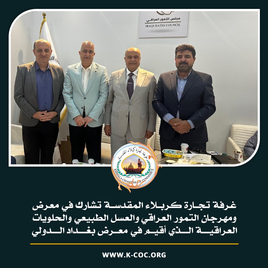 غرفة تجارة كربلاء المقدسة تشارك في معرض ومهرجان التمور العراقي والعسل الطبيعي والحلويات العراقية الذي أقيم في معرض بغداد الدولي