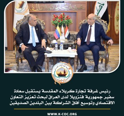 يسر غرفة تجارة كربلاء وجميع العاملين فيها تهنئة رئيس واعضاء مجلس ادارة الغرفة الجديد في دورته الجديدة 26 متمنين لهم المزيد من العطاء والتقدم لخدمة بلدنا العزيز ومدينة كربلاء المقدسة وتجارها الكرام
